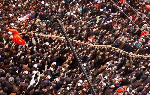 万人扯绳赛(又称万人拔河赛),是甘肃省临潭县每年农历正月十四至十六举行的传统民俗体育活动,起源于明代洪武年间沐英驻军时期的“牵钩”练兵活动,后演变为民间占卜年景、凝聚民心的集体竞技项目。该活动以直径5厘米、总长1808米、重达16吨的钢丝缆绳为器械,参赛者按居住地分为“上片”“下片”两方,以西城门为界展开角逐,由推选的“连手”负责胜负裁决。2001年因绳重、直径、长度及参赛人数之最列入吉尼斯世界纪录,2006年被列入甘肃省首批非物质文化遗产,2021年升格为国家级非遗项目。临潭县曾于2007年创下超15万人参赛记录,中断17年后于2025年2月重启活动,首日参与群众达九万人次。