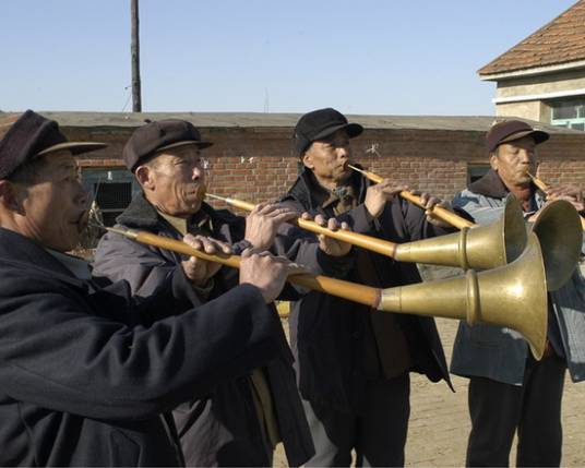 丹东鼓乐是辽宁省丹东地区流传百年以上的传统民间音乐形式,属鼓吹乐类,以管乐器与打击乐器组合演奏为主,常见于婚丧嫁娶、年节庆典等民俗活动。其吹管乐器包括唢呐、管子、笙等,打击乐涵盖鼓、锣、钹等,部分鼓乐班加入拉弦、弹拨乐器。按乐器分为唢呐乐(含喇叭乐、小喳子乐、三不搁及咔戏)与笙管乐两大类,演奏技法通过“咔戏”模拟禽鸣及人物腔调。曲牌丰富多样,曲体结构含堂吹曲(引子、身子、尾子)、牌子曲及套曲。该艺术形式在《安东县志·婚礼》、《凤城县志·丧葬》、《凤城县志·岁事》等古籍中均有记载,传承谱系包括戚家班、袁家班及唐家鼓乐班。国家级代表性传承人唐海峰为唐家班第四代传人,其家族保存《小开门》《四破》等传统曲目。2006年辽宁鼓乐(含丹东鼓乐)列入第一批国家级非物质文化遗产名录。丹东市非遗保护中心已开展数字化采录工作,多年来深受当地群众喜爱。