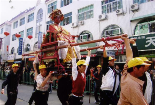云霄开漳圣王巡安民俗,福建省漳州市云霄县民俗,福建省省级非物质文化遗产之一。公元686年,唐代名将陈元光父子,南下福建平定叛乱,后来,陈元光奏请朝廷在漳江之畔的云霄西林建立漳州郡。从此陈元光将军被尊称为“开漳圣王”。千百年来,每逢元宵节前后,云霄人民都会用“圣王巡安”这一特殊的民俗活动来纪念陈元光及与其一起开漳的诸位将军。每年元宵节期间,云霄民间都会举办场面浩大,气势恢宏的“开漳圣王巡安”大型民俗活动,再现开漳圣王及将佐戍卫边境的情景。据介绍,“圣王巡安分为‘巡城’‘鉴王’和‘走王’三部分,再现当年开漳圣王及将佐戍卫边境的情景。”2005年,“云霄开漳圣王巡安民俗”经福建省人民政府批准列入福建省第一批省级非物质文化遗产名录,项目编号:Ⅹ-96。