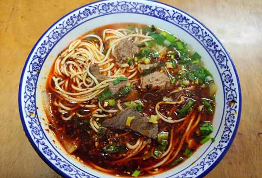 兰州牛肉面是甘肃省兰州市最具特色的大众化经济面食,以“一清(汤)、二白(萝卜)、三红(辣子油)、四绿(香菜、蒜苗)、五黄(面条黄亮)”为制作标准,面条分为毛细、细、二细、三细、二柱子、韭叶、薄宽、宽、大宽等九种面型。其汤色清气香,萝卜片洁白,辣椒油鲜红,配菜翠绿,面条柔滑透黄,形成独特风味。该面食起源可追溯至清嘉庆年间,甘肃东乡族马六七在北京国子监求学期间,从河南怀庆府陈维精处习得清汤牛肉面技艺后带入兰州,经陈和声、马保子等人改良后定型。20世纪后期,青海人将兰州牛肉面以“兰州拉面”商标推广至全国,成为家喻户晓的中式快餐。1999年兰州牛肉面被列为中式三大快餐试点推广品种,2021年其制作技艺入选国家级非物质文化遗产名录。2025年,兰州牛肉面入选首批中国消费名品名单,并启动牛肉拉面制作师国家职业标准编制。