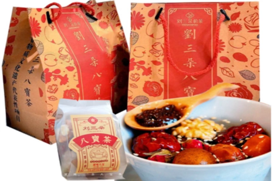 刘三朵八宝茶是宁夏回族自治区级非物质文化遗产代表性项目,由宁夏刘三朵八宝茶科技有限公司研发生产,其制作技艺始于清咸丰年间,历经五代传承。该茶以云南生普茶叶、中宁枸杞、福建桂圆等南北食材为原料,融合传统盖碗茶技艺与药食同源理念,形成包含八大冲泡步骤的特色养生茶品。企业建成GMP标准化生产线,拥有59项注册商标及14项实用新型专利,涵盖原料加工、包装展示等领域。产品线包括传统配方、零卡糖草本茶、国潮礼盒等56种创新品类,并通过全国30家门店及线上渠道销售,远销23个国家。公司设立非遗体验馆,集成文化展示、研学体验功能,年接待游客超20万人次。刘三朵八宝茶曾获“宁夏宝藏品牌第一名”“专精特新”中小企业等荣誉,其产品被列为央视非遗晚会展示项目。企业创新推出便携式奶茶杯包装、“浪宁夏”八宝茶心意盒等文创产品,并建成宁夏茶美术馆作为文化传承示范基地。