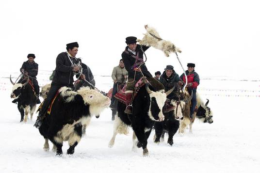 骑马叼羊是维吾尔族、哈萨克族、柯尔克孜族、塔吉克族等多个新疆民族所共有的传统竞技项目,在新疆分布广泛。叼羊比赛一般在两个部落或两个群体间进行,以“叼”到羊后安全送达指定地点的一方为胜。 <br />