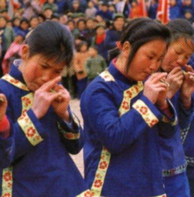 咚咚喹,土家语称“早古得”,别称“呆呆哩”,是土家族单簧竖吹乐器,流行于湘鄂渝黔边邻的土家族聚居区。管身多由细竹制成,长度在10-20厘米之间,设三至四孔,簧片位于节下1厘米处,发音清脆明快,深受土家族妇女、儿童喜爱,可独奏、重奏或为民俗活动伴奏。2008年6月7日被列入第二批国家级非物质文化遗产名录。该乐器曲牌体系包含《耍调》《赶集》《布涅咚》等二十余种传统曲目,常以双管对奏形式呈现轻快活泼的曲调。吴吉祥创作的《土家下山》通过三拍子节奏与摇滚元素实现传统韵律创新。在交响音诗《三湘四水》巡演中,AI技术被用于分析提炼其核心旋律动机并融入交响编配。起源可追溯至新石器时代骨哨,湘西松溪口和高庙遗址出土的7400年前骨哨为其演变提供实证。民间传说与秦始皇修长城相关,土家族女子巴列吹奏竹笛呼唤丈夫的故事流传甚广。2023年11月9日湖南省发布《土家族非遗乐器咚咚喹通用技术要求》(DB43/T 28