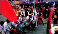 新增项目 嘎尔舞 级别省级 申报单位西藏自治区群艺馆 保护单位西藏自治区群艺馆 嘎尔舞是甘肃土族特有的民间歌舞形式,又称巴郎鼓舞,其表演活动固定于每年农历正月初八日启幕,以"绕着广场上的火堆载歌载舞"为核心表现形式。舞蹈由持巴郎鼓与红灯笼的表演队伍构成,通过"三步转圈""绕火堆歌舞"等程式化动作,传递着对日月星辰的自然崇拜与五谷丰登的祈愿。该舞蹈具有显著的族群互动特征,表演团队以村为单位进行巡演,本村与外村通过敞门生火、燃放鞭炮、敬酒问候等仪式形成文化互动。作为土族安昭舞、婚礼舞等构成的舞蹈体系中的重要组成部分,嘎尔舞承载着"象征人寿年丰"的农耕文明精神内核。