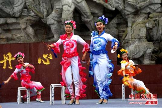 四川盘子是以两支竹筷敲击瓷盘击节闻名的四川民间曲艺形式,主要流行于川东地区。其表演无伴奏,通过敲击盘沿、盘心等不同部位产生高低急缓的音响,曲调融合民间小曲与四川清音的曲牌,曲目多为讲唱故事或抒情短段。传统表演由一两人自敲自唱,后发展出群体合唱、融入舞蹈动作的舞台形式。代表作品《水都消息》在传统基础上改良,采用12人合唱形式,结合扬琴伴奏与舞蹈编排,展现遂宁风土人情。2021年起,四川多地学校将四川盘子纳入艺术教育课程,通过非遗进校园活动培养传承者。