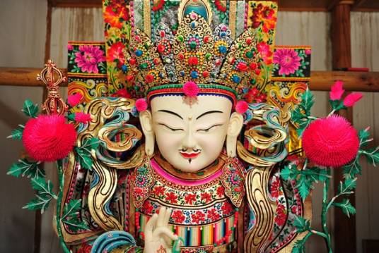 塔尔寺酥油花,青海省湟中县民间传统美术,国家级非物质文化遗产之一。酥油花是一种用酥油(黄油)塑形像物的特殊技艺,为“塔尔寺三绝”(酥油花、壁画、堆绣)之一。酥油花最早产生于西藏苯教,是施食供品上的小小贴花。一架酥油花,从整体来看,亭台楼阁数十座,人物、走兽动辄以百计,大至一两米的菩萨金刚、小至十数毫米的花鸟鱼虫无所不备,浮雕与圆雕结合,人物与景物结合,佛界与凡间结合,动态与静态结合,时空分而不断,物象繁而不乱,色彩缤纷,浑然一体。2006年5月20日,塔尔寺酥油花经中华人民共和国国务院批准列入第一批国家级非物质文化遗产名录,遗产编号为Ⅶ-48。