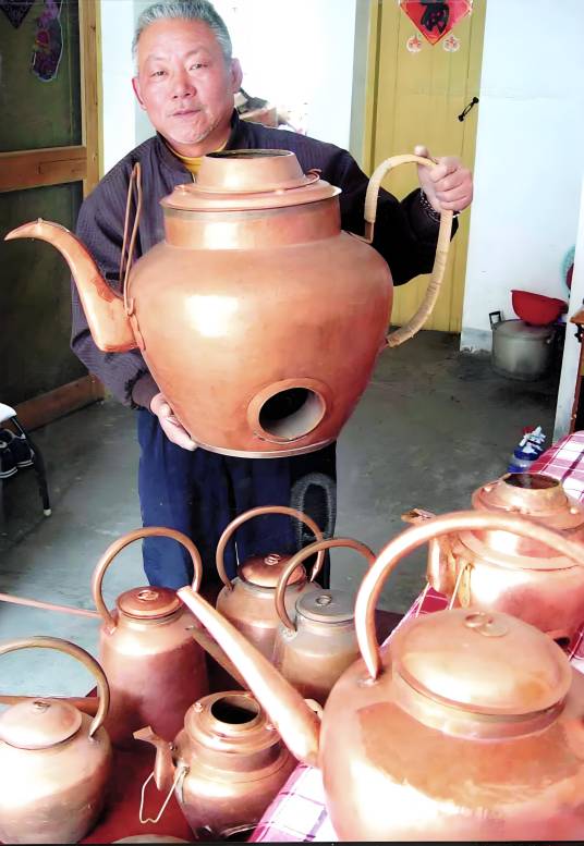 太平府铜壶技艺是安徽省当涂县传统手工技艺,属省级非物质文化遗产,以紫铜锻造为核心工艺,历史可追溯至唐代中期。其制品规格多样,涵盖百公斤至袖珍型,尤以“火烧心”工艺为代表,传承人张恒兴为该技艺的唯一传承人。该技艺需将厚铜板手工锻打至不足0.3厘米的薄片,经剪裁、成型、烧焊、抛光等工序制作铜壶,成品兼具实用与艺术性。“火烧心”是其代表性工艺,其内部中空,制作工艺复杂考究。技艺传承人张恒兴自20世纪60年代从事铜器制作,2009年被列为省级非遗传承人。2007年,太平府铜壶技艺经安徽省人民政府批准列入首批省级非遗名录。传承人张恒兴已无法继续制造,技艺通过口述教授,面临缺乏合适传承人的困境。当涂县制作紫铜壶起始于唐中期。元代至正十五年(公元1355年),朱元璋自采石渡江取太平路(当涂),改太平路为太平府后,当涂紫铜壶即冠以“太平府”三字。当涂素以盛产紫铜壶而闻名于世,民国初年,在芜湖举办的铜壶展评