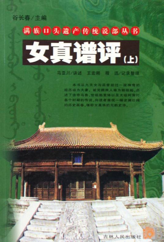 《女真谱评》是满族民间口传文学,记载女真族历史传说与神话故事。该文献由黑龙江省双城市满族民间故事家马亚川根据外祖父赵焕手抄本默记传承,2009年整理为《满族口头遗产传统说部丛书》出版,包含完颜部起源至金太祖阿骨打建金的历史叙事。文献主体以《完颜部的传说》为核心,讲述九天女与渔郎成婚繁衍女真族、函普调解部族冲突确立父系制度等情节,其中阿骨打追封的十位先帝传说(包含始祖函普、德帝乌鲁、安帝跋海等)通过生动叙事展现完颜部发展全貌,填补了史籍中相关人物记载简略的空白。内容贯穿辽金战争、金朝兴衰及萨满文化元素,揭示黑龙江流域部落迁徙与社会演变轨迹。此书原由清末未第秀才收集民间传说编成《谱评》,后经马亚川外祖父抄录保存。文献在家族内部口耳相传,散佚后由马亚川凭记忆重新整理形成现存版本,现存章节包含"九天女斩蛇追鱼郎""阿骨打大闹宁江州"等传说叙事。