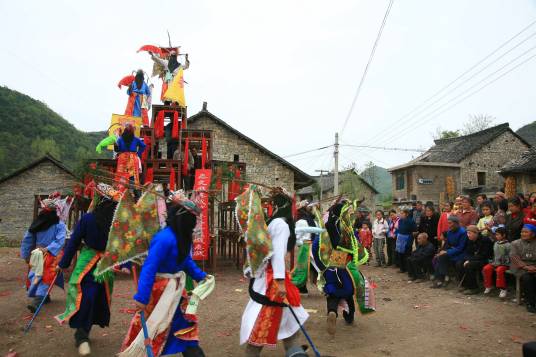 安顺地戏演出以村寨为单位,演员是地道的农民。一般一个村寨一堂戏,演员二三十人,由“神头”负责。演出在每年的新春佳节和农历七月稻谷扬花时节举行,村民还会在建房求财、祈福求子的时候请地戏队中的“神灵”如关羽、佘太君等去进行“开财门”、“送太子”等活动。 <br />