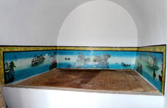左卫墙围画,又称炕围画,是中国河北怀安地区传统民间室内装饰画,为河北省非物质文化遗产。其起源于冬季火炕采暖导致墙面脱落污染衣物的实用需求,早期以白土混合胶水涂刷墙面,后发展为墨线勾绘图案,最终形成颜料作画、桐油涂罩的装饰形式。该画作制作需经打底、画边、画空、罩面等工序,采用上下边道构成框架,其间分布方形、圆形等画空结构。边道以连续吉祥纹样装饰,画空内容涵盖山水、人物、花鸟等题材,表现形式包括工笔重彩与水墨写意。传统墙围画高度约二尺,随现代建筑增高而调整尺寸。作品如《山高水长》《春雨翠竹》多描绘自然景观或名胜建筑,兼具实用保护与艺术装饰功能。其风格演变反映了不同时期民俗风貌与审美特征,具有观赏、审美及历史文化研究价值。