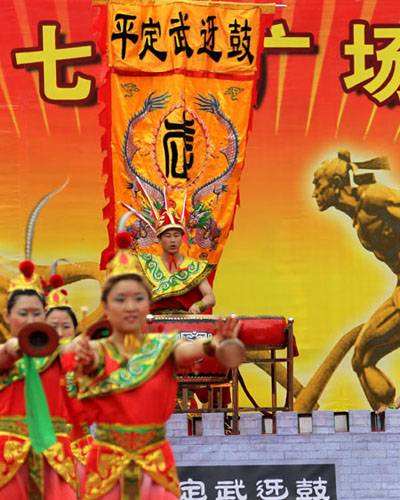 平定武迓鼓是流传于山西省的民俗舞蹈,是国家级非物质文化遗产之一。平定位于太行山右中段,地处冲要,素为兵家必争之地,东邻河北井陉、平山,西连(晋中)寿阳,南毗(晋中)昔阳,北接阳泉市郊区、盂县;面积1353平方公里,人口32万。境内青石成山,黄土为丘,旧石器时代已有先人聚居生息。