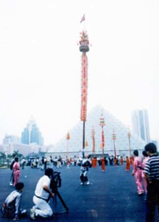 建瓯挑幡是福建省传统民俗活动,2008年被列入第二批国家级非物质文化遗产名录,2019年入选国家级非遗代表性项目保护单位。其幡体选用约10米长的毛竹制成,经削枝晾干后涂朱红漆并绘吉祥图案,顶部扎彩灯与六角宝塔,塔周悬挂铜铃,底部缀绣字绵幡。该活动集文化娱乐与强身健体于一体,表演者通过头、肩、肘、牙等部位展示挑幡技艺,配合古典服饰与民间锣鼓,形成"手舞东风转""肩扛南天松"等系列动作。其技艺展演曾获中国民间文艺山花奖。其起源与明末郑成功收复台湾相关,凯旋将士以舞动军旗纪念胜利,后演变为民间习俗。传承人祝石梁组建艺术团,芝山小学将挑幡纳入课后课程体系,促进技艺传承。