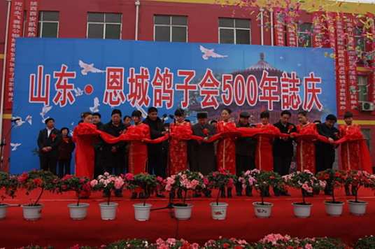 恩城鸽子会是山东省平原县恩城镇每年农历正月初八举办的民间文化盛会,起源于明朝正德年间,迄今已有500余年历史,2010年入选县级非物质文化遗产名录,2021年升格为省级非遗项目。该活动以鸽子为核心,涵盖观赏、交易、竞翔及文化交流,设有观赏鸽、信鸽、肉鸽等展区,近年规模达2000余摊位,融入牛斗虎、鲁北大鼓等56项非遗展示。展会吸引全国养鸽爱好者参与,2023年游客超10万人次,交易额逾5000万元,并带动周边餐饮、住宿消费。活动期间还举办政企合作授牌仪式,推动“文化+经济”融合发展。其前身为明代恩城大集“鸟市”,后逐步演变为以鸽类交易为主的集会。改革开放后,政府通过设立“中国平原鸽子节”等措施扩大影响力,1992年首届活动吸引近千名海内外客商,形成兼具传统文化与养殖产业的特色品牌。
