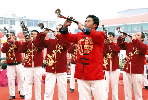 唢呐艺术(晋北鼓吹),民间称“鼓房”“鼓上家”“鼓班”,山西省阳高县、山西省忻州市传统音乐,国家级非物质文化遗产之一。唢呐艺术(晋北鼓吹)起源于元明时期北方流行的鼓吹音乐,主要流传在山西省大同、忻州地区的一种民间器乐合奏形式,主要应用于岁时节令、庆典祭祀、婚丧社火等民俗活动。唢呐艺术(晋北鼓吹)音量洪大,音色高亢明亮,大气磅礴,独具一格,曲调多源于民歌、民间器乐曲、戏曲曲牌及宗教音乐,它主要演奏《八大套》《大得胜套》等套牌音乐,五台八大套有八大曲牌,共约65个曲目,代表曲目主要有《将军令》《水龙吟》《百鹤宴》《大雁落》《大八门》等。2008年6月7日,唢呐艺术(晋北鼓吹)被国务院批准列入第一批国家级非物质文化遗产扩展项目名录,编号Ⅱ-37。