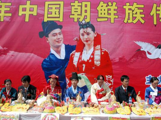 朝鲜族传统婚礼,吉林省延边朝鲜族自治州传统民俗,国家级非物质文化遗产之一。朝鲜族曾长期实行“男归女家婚”,即新郎在新娘家举行婚礼并留居若干年,而后再带领妻子儿女返回自己家中。明清时期,朝鲜王朝受儒家思想影响,极力推行在结婚当天把新娘接回新郎家的“亲迎”方式,但面临传统习惯的阻力难以实行,于是将“男归女家”方式与“亲迎”方式相结合,创造出了折中的“半亲迎”方式:新郎在新娘家举行婚礼后只住两天,第三天即带领新娘返回新郎家。其后“半亲迎”方式成为朝鲜民族的主要婚娶方式。中国朝鲜族婚嫁在20世纪50年代以前采用“半亲迎”和“亲迎”两种方式,而以“半亲迎”方式为主,1950年以后统一为“亲迎”方式并一直沿用至今。2008年6月7日,朝鲜族传统婚礼经中华人民共和国国务院批准入选第二批国家级非物质文化遗产名录,遗产编号为Ⅹ-99。
