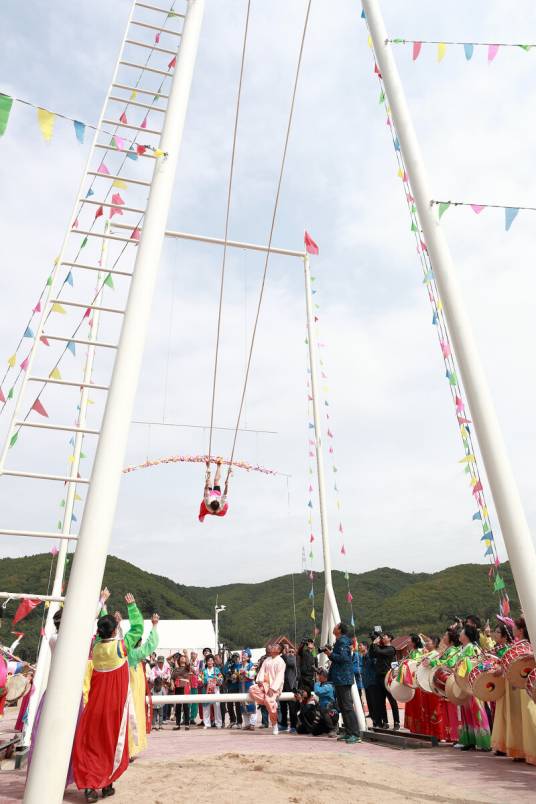 秋千是朝鲜族妇女最喜欢的活动之一,历史悠久,流行于延边朝鲜族自治州及其他朝鲜族聚居的广大农村。 <br />