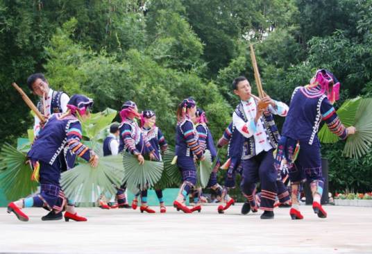 棕扇舞是哈尼族传统舞蹈,流传于云南省红河与元江两县交界的哈尼族村寨。 <br />