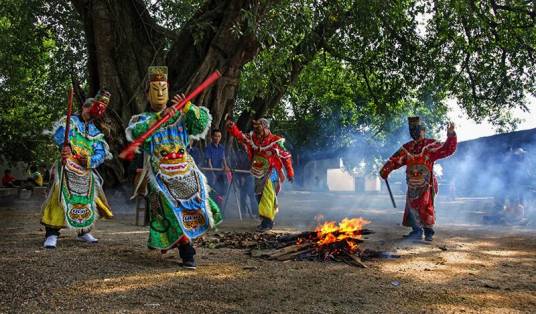 <p>地处广西壮族自治区南部沿海、北部湾顶端的钦州市,至今仍保留着一种古老的跳岭头习俗。这一习俗是钦州壮族、汉族村寨为辟邪、收妖除瘟,祈求庄稼丰收、人畜平安以及保护村屯清洁而举办的祭祀活动,以舞蹈形式呈现,是体现民族文化交流与团结的习俗活动之一。</p>