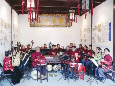 泗泾十锦细锣鼓是上海松江区泗泾镇的传统民间音乐,形成于清代,融合昆腔艺术与江南丝竹特色,已有近300年历史。其演奏以锣鼓技法为核心,演奏者需同时操作多件乐器,通过敲击力度与位置变化产生独特音色,兼具南昆艺术的细腻风格与鲜明节奏感。该乐种发源于泗泾古镇,清代由“阳春堂”吹打班传承,1947年后一度中断。1986年文化普查中发现光绪年间手抄本曲谱,经老艺人指导复原。2008年被列入第二批国家级非物质文化遗产名录。2019年泗泾镇社区服务中心成为其保护单位。现以松江民间古乐团为主体开展定期展演,并与上海音乐学院合作创编新曲目,通过“泗泾有戏”等系列活动促进活态传承。