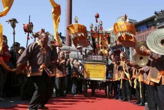 法鼓是天津民间花会的重要项目,本系佛教音乐,据传,最早的一个法鼓团体即是大觉庵金音法鼓会。法鼓会乐器由鼓、钹、铙、铬子、铛子等组成,而以鼓为主,居于乐队的中央;钹左钹右,各有七八人;铬子、铛子各二人,都在鼓后。表演时各种手持乐器均需“耍”,并要轮流表演。开始演奏称为“开”,先击鼓数声,继之头钹连敲四声,之后各种乐器按谱齐奏。如是在行会时,则只以铬子、铛子打【常远点】曲牌以整齐步伐。法鼓曲牌约十几套,常用的有【老西河】、【摇通鼓】等。民间法鼓会众多,其中较为著名的有挂甲寺庆音法鼓、杨家庄永音法鼓、刘园祥音法鼓、龙亭井音法鼓、芥园花音法鼓和侯家后永音法鼓等。 <br />