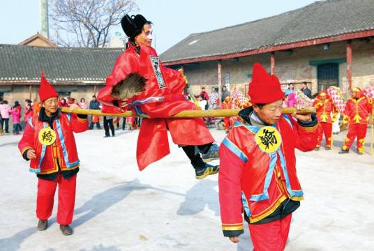 独杆轿是中国传统民间舞蹈形式,流行于安徽固镇及山东枣庄等地,以一根竹竿作轿杆,由两人抬竿、一人坐轿配合锣鼓点表演。许昌市2008年将其列入第一批市级非物质文化遗产,安徽固镇垓下独杆轿入选安徽省第四批省级非遗,山东峄城区表演形式被列为山东省省级非遗。该舞蹈在安徽固镇庙会表演中采用丑角“四老爷”形象,通过诙谐动作讽刺封建官吏。山东峄城区独杆轿为峄城人首创,属于中国稀有艺术品种,起源于清代乾隆年间知县张玉树任期内,为纪念其政绩而创造,道具包含“一身正气”旗牌,表演需配合竹竿颤动完成高难度动作。峄城驻地坛山街道文艺队至今仍保留此项表演技艺。1995年山东卫视拍摄《峄县社火》专题片经央视转播推广,固镇县2025年举办的非遗图片展及踩街活动均展示此项技艺。