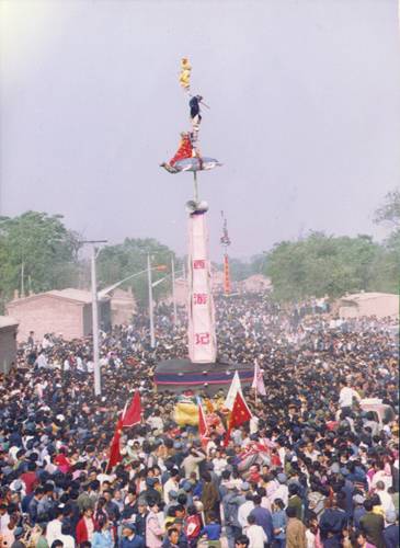 盐山千童信子节是河北省沧州市盐山县千童镇特有的民间祭祀活动,源于秦代徐福率童男女东渡事件,于每年农历三月二十八日举行祭祀,甲子年举办大型祭仪,2008年入选国家级非物质文化遗产名录。该活动以登高招魂形式延续汉代"抬阁"传统,祭仪含木杆、铁棍搭建的空中舞台、童男女造型表演及抬阁巡游等内容,全城清水泼街、黄土垫路,由36名壮汉抬行环城表演并配合武术队、鼓乐队等传统花会项目。公元前209年徐福船队东渡后,当地民众通过筑高台、绑木架等方式祭奠未归者,隋唐后发展为木杆与铁棍组合的移动舞台形式,现代采用钢架结构并融合声光电技术,形成"绕安征募""东渡击浪"等经典造型。活动载体高度从汉初12米扩展至现代20余米,祭祀流程涵盖开化寺开祭、东门望海等环节,与日本佐贺"氏子节"形成跨海呼应。盐山县已建成千童祠、博物馆及东渡遗址公园等文化设施,并通过千童艺术节促进国际交流。