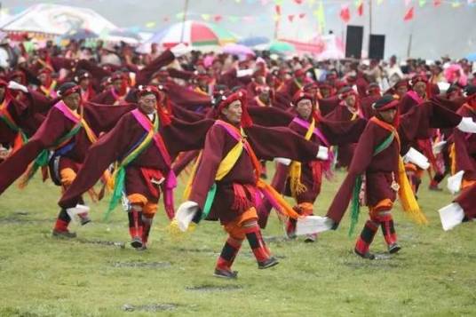 锅庄舞(称多白龙卓舞)是青海省称多县传统舞蹈,国家级非物质文化遗产,遗产类别为传统舞蹈,申报地区为青海省称多县,保护单位为称多县文化馆。2023年该项目保护单位通过国家级非遗评估。该舞蹈以腿部发力带动全身,形成重心下沉的独特风格,包含“郭卓”(走舞)和“枯卓”(转舞)两大类型。动作兼具粗犷与轻快特征,通过脚下步伐组合与手臂摆动构成舞姿,营造“祥云弥漫天宇”的意境。表演常以篝火晚会形式展现,参与者手拉手变换队形,体现集体性特征。白龙卓舞起源于格萨尔王婚礼表演,距今已有九百余年历史,长期作为藏区宴会舞流传于称文镇白龙村。现存16位艺人中仅1人完整掌握全部30种舞种。2023年称多县通过草原盛会等节庆活动推动该舞蹈传承。