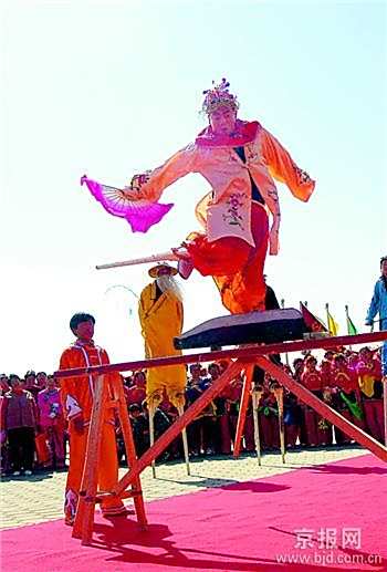 米粮屯高跷会是北京市丰台区传统民俗文化活动,起源于清乾隆十年(1745年)创立的同乐高脚会,由艺人马四爷发起。表演以1.6米独腿高跷为特色,包含夜叉探海、鹞子翻身等高难度动作,角色分为陀头、淘气儿、公子等13类,采用男性反串女装的表演形式。2006年被列为北京市首批非物质文化遗产。乾隆十五年(1750年)获御赐飞龙旗、飞虎旗及“皇会”称号,成为宫廷表演团体。抗日战争期间曾掩护八路军活动,解放战争时期参与政策宣传。现有成员保留大场引入、个人献技、小戏表演三段式结构,配以《太平歌》传统唱段。1995年重组后获丰台区花会大赛冠军,2015年起开展校园传承。