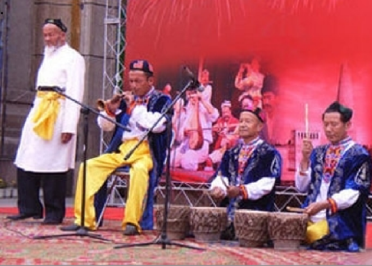 维吾尔族鼓吹乐是新疆维吾尔族聚居区流传的民族器乐乐种,由苏乃依(唢呐)、三对纳格拉(铁鼓)和冬巴克(大铁鼓)组合演奏,常用于节日庆典、人生礼仪及群众性舞蹈伴奏,具有节奏多变、旋律起伏的特点。其演奏曲目包含伊犁地区《十二套鼓吹乐套曲》、吐鲁番《叶尔》《米力斯》等套曲,结构多以散板序奏开始,渐快至热烈后以散板结束。该乐种历史可追溯至南北朝时期传入的羯鼓,后演变为铁制纳格拉;吹奏乐器苏尔奈源自阿拉伯。西迁伊犁的维吾尔族历经六百余年融合创作,形成十二套规范化鼓乐套曲,包含赛乃姆、木夏来克等题材,部分与十二木卡姆相关。现代乐队组合分南北疆差异,北疆常见二对纳格拉加卡奈依,南疆多以一对纳格拉为主奏。2008年列入第二批国家级非物质文化遗产名录,保护单位为新疆维吾尔自治区艺术研究所。2023年传承人阿卜力孜·萨迪克入选第六批国家级非遗代表性传承人,伊宁县等地通过培训班及传习班社推进活态传承。