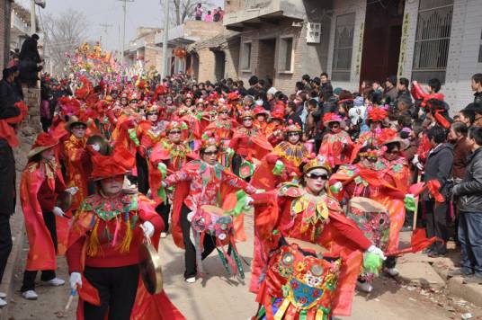 新增项目 花苫鼓 级别省级 申报单位渭南市 保护单位渭南市 花苫鼓,又称花鼓或花社火,是陕西地区传统民间舞蹈,以刺绣织物装饰鼓队为特征,2007年被列入陕西省非物质文化遗产名录。该舞蹈流传于陕南秦巴山区及关中渭南大荔县等地,其名源于覆盖鼓身的刺绣“鼓苫子”。表演分行进和场地两种形式,行进时鼓手进退交替形成对称队形,落场表演则以指挥者为中心围成多层圆圈。角色分女子击鼓、男子伴奏。起源存在多元传说,包括明代纪念清官、县令祈雨献女等。现常见于元宵节、二月二庙会等节庆游演。
