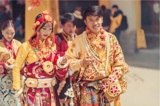 民间有一种说法——“婚宴进行十八昼夜,婚礼祝词有十八道程序”,即婚宴十八说的真实情况。婚宴十八说始终贯穿于婚礼之中,大多为说唱,都是即兴表演的,一般由十几人分阶段完成,有时则需要几天时间。藏族婚宴十八说的具体内容有:祭神、梳辫说、梳子说、哭嫁歌、出路歌、父母的教诫、马说、垫子、土地颂、房屋、茶、酒、婚礼宴说、系腰带、衣服、祝福、嘱托、吉祥。伴随着婚宴十八说,还有丰富多彩的歌舞活动和美味佳肴,以及艳丽而华贵的藏族服饰,场面热烈浪漫、庄重华丽。 <br />