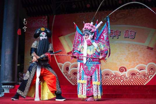 邕剧是广西四大地方剧种之一,旧时习称为“广戏”、“老戏”、“五六腔”,流传于广西、广东、云南、贵州等省及越南、柬埔寨等国。它发源于湖南,属皮簧声腔系统,因活动中心在古邕州一带,且用邕州(南宁的古称)官话演唱,新中国成立后将之定名为“邕剧”。 <br />