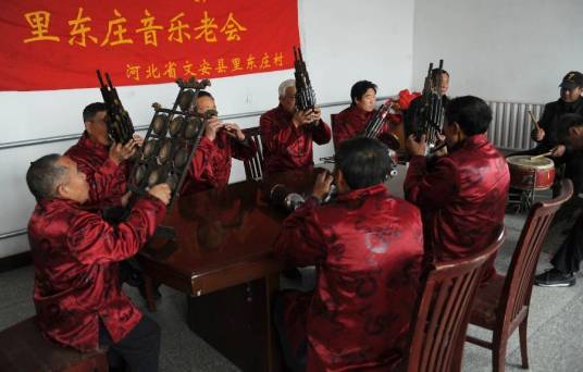 新增项目 里东庄音乐老会 级别省级 申报单位廊坊文安县 保护单位廊坊文安县 里东庄音乐老会是一种古老的传统古典音乐。创建于明代嘉靖年间,已有近500年历史。其古典音乐源于北京智化寺。智化寺是明代正统八年(1443年)宦官王振创建的。原为家庙,后改为寺庙。他把宫廷中的庆典、祭祀和丧葬等仪式上演奏的乐曲传给寺内僧侣,从而使宫廷音乐转移到佛教寺院。2019年11月,文化和旅游部办公厅组织开展了国家级非物质文化遗产代表性项目保护单位检查和调整工作,认定里东庄音乐老会保护单位为河北省文安县文化馆。