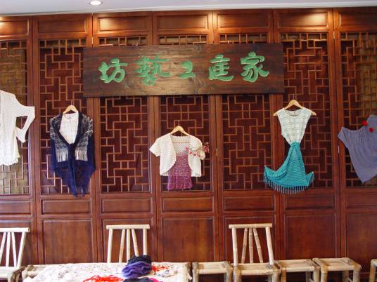 钩针编织技艺是以钩针为工具,通过线、绳等材料的交织编织形成多种纹理与图案的传统手工技艺,其历史可追溯至清朝时期,并融合了中西方编织技法。该技艺是在本土编织工艺基础上融合欧式抽纱编织法改良而成的手工技法,作品体系涵盖花卉盆景、生肖形象及融入地域发展理念的IP形象(王小枣、王小花、王小风),形成兼具实用性与艺术性的编织体系。2025年广州市文化馆展演中,其作品从传统家居织物拓展至潮流饰品领域,开发出编织项链、艺术装置等新品类。该技艺现为章贡区第八批非物质文化遗产项目,2024年小王庄镇传承人徐桂苓通过系统性技法整理形成"师徒制+创新工坊"双轨培养模式,推动技艺进入12个村居和6所中小学。2024年传承人凃洁通过社区教学进行技艺传播,镇政府将作品开发为特色伴手礼应用于农产品包装、文旅宣传等场景,带动相关产业增收超百万元。