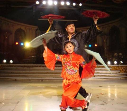 二人转(Er ren zhuan),史称小秧歌、双玩艺、蹦蹦,又称过口、双条边曲、风柳、春歌、半班戏、东北地方戏等。是一种有着三百多年历史,悠远的原始文化传承的独具特色的民间艺术形式。它植根于中国东北民间文化,属于中国走唱类曲艺曲种,流行于辽宁、吉林、黑龙江、内蒙古东部三市一盟和河北省东北部等地区。表现形式为一男一女,服饰鲜艳,手拿扇子、手绢,边走边唱边舞,表现一段故事,唱腔高亢粗犷,唱词诙谐风趣。东北特色二人转主要来源于东北大秧歌和河北的莲花落。用东北人的俏皮话说:二人转是“秧歌打底,莲花落镶边”。二人转是在东北大秧歌的基础上,吸取了河北的莲花落,并增加了舞蹈、身段、走场等演变而成。二人转自草创,大约有近300年的历史,艺人师承关系可上溯到清朝嘉庆末年。二人转在历史曾形成东、西、南、北四个流派。清后期和民国初年出现“闯关东”大潮,大批山东、河北人进入东北,“秧歌打底,莲花落镶边”的二人转