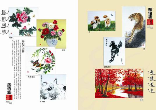 锡伯族刺绣主要用于服饰,如旗袍、马甲、坎肩、寿服以及官服和兵服等的装饰,以及枕顶、门帘、荷包、茶具盖布、鞋袜、门窗、罩帘、墙围布、帐篷、锦帐等家庭日常用品。刺绣的图案多是表达吉祥意义的牡丹、仙鹤、龙等各种动植物,刺绣的针法主要有串珠、刺花、镶嵌、彩漆、描金、雕花、编织、贴花、金银线、拼花、挑花、扎花等。 <br />