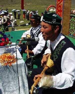阿肯弹唱是柯尔克孜族与哈萨克族共有的传统民间艺术形式,以冬不拉弹奏和即兴创作为核心特征。“阿肯”在哈萨克语中意为民间歌手,兼具诗人与歌手的双重身份。表演形式包含自弹自唱与对唱两类,其中对唱以即兴赛歌为主,涵盖习俗歌、情歌、历史题材等内容,通过机智应答与弹奏技巧争夺胜负。弹唱活动多在节日庆典、婚嫁礼仪、草原转场等场合举行,参与者常通宵竞技,现场氛围热烈。该艺术形式于2009年入选兵团级非物质文化遗产代表性项目名录,2018年被列为新疆维吾尔自治区第五批传统音乐类非物质文化遗产。随着时代发展,弹唱内容融入歌颂新生活、民族团结等主题,并通过旅游节庆活动传播。乌鲁木齐、昭苏等地多次举办阿肯弹唱会,将安全生产、惠民政策等新时代元素融入传统表演形式。在哈萨克族聚居区,阿肯弹唱仍是婚丧嫁娶、宗教典礼中的主要文化载体,并作为民俗旅游项目持续焕发活力。