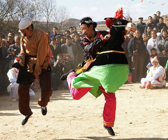 靖边跑驴,陕西省榆林市靖边县传统舞蹈,国家级非物质文化遗产之一。靖边跑驴是流传在陕西省榆林市靖边县的民俗社火中的一种传统民间歌舞表演形式,传说是由“张果老倒骑毛驴”的民间故事创编或明成化年间由艺人姚福根据“跑竹马”改编而成的。跑驴通常尾随秧歌队后即兴表演。后经著名艺人张有万和舞蹈家孟海平 加工整理,已成为生活情趣盎然、技术丰富、独树一帜的陕北民间舞台表演艺术。其特点是将“驴”拟人化,表演时传神、传情、诙谐、幽默,展现出诱人的民俗文化艺术魅力与审美价值。2008年6月14日,靖边跑驴经国务院批准列入第二批国家级非物质文化遗产名录,遗产编号:Ⅲ-56。