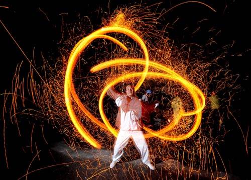 晋阳风火流星俗称“火流星”,是一门融民间杂技与中华武术为一体的民间社火表演艺术。主要在山西省太原市晋源区一带流传。其表演一般在晚上进行,由单人或多人做“背花”、“馒头花”等动作,使绳子两端的铁笼在空中由慢到快旋转起来,笼中火花四溅,火借风势,风助火威,形成各种各样的图案。风火流星表演中演员可做出行、站、坐、卧、翻滚等多种动作,人在火中,火随人转。其表演套路与武术套路大致相似,有双龙开道、火龙缠身、悟空舞棍、火龙十八滚等样式。表演时用小锣鼓配乐,在不同的鼓乐声中变换动作,扣人心弦。 <br />
