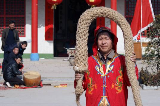 新增项目 马皮舞 级别省级 申报单位获嘉县 保护单位获嘉县 马皮舞,原名“耍马皮”“神马皮”,现又称“巨鞭马皮舞”“金龙马皮舞”,是河南省新乡市获嘉县徐营镇杜官滩村特有的传统舞蹈,始于明代。该舞蹈源于明崇祯十三年豫北大旱祈雨祭祀,以“钉马祭天,皮革制鞭,武舞兼备”为特点,表演由一人挥动7米长、重约30斤的山麻巨鞭,八名扮马者背绘有关羽、张飞等人物图像的木质“将架”绕圈舞动。1983年被确认为全国独有的民间舞蹈形式,2004年列入河南省民族民间文化保护工程名录,2009年获评河南省省级非物质文化遗产。目前因传承人稀少面临濒危。