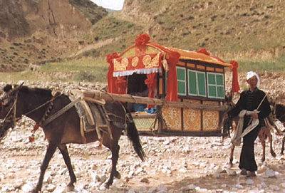 骡驮轿是中国北方传统婚俗中的迎娶工具,流行于山西省朔州市平鲁区、偏关县及内蒙古清水河县、准格尔旗等地,由两头骡子驮载花轿构成,适应黄土高原崎岖地形。2006年被收录于中国民间文化遗产并列为山西省省级非物质文化遗产,2009年列入内蒙古自治区级非物质文化遗产名录。轿身长2米、高1.5米,木质轿杆架设两侧,装饰双凤凰、双蝴蝶及“鸳鸯戏水”“五子登科”等吉祥图案。娶亲时骡系红缨铜铃,骡夫身着黑衣、头缠白巾,需保持轿子平稳以获新娘红包。婚礼含娶亲、送亲等环节,男方需提前预订骡夫。该婚俗起源于汉代汉族与少数民族联姻,相传为赶吉时而改用骡驮轿。清代形成职业轿行,父子传承为主。因骡畜饲养减少,技艺传承面临困境。
