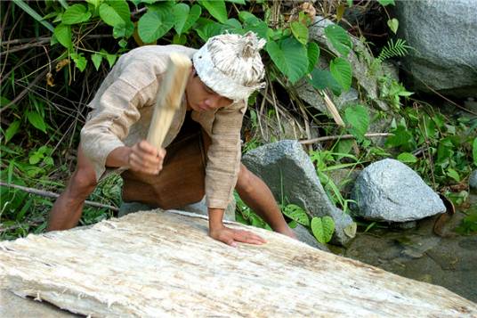 黎族树皮布是海南黎族以植物树皮为原料,经拍打技术加工制成的无纺织布,又称纳布、楮皮布、谷皮布。2006年被列入第一批国家级非物质文化遗产名录,申报单位为海南省保亭黎族苗族自治县。该技艺主要分布于海南中南部黎族聚居区,制作工序包含扒树皮、浸泡脱胶、拍打成型等,核心工具为石拍。成品可缝制衣物、垫单、腰带等生活用品,具有防虫耐腐、透气防潮等特性。汉代《东观汉记》、宋代《太平寰宇记》等文献均有相关记载。树皮布历史可追溯至3000年前,明清时期逐渐被棉麻织物取代,但黎族仍保留制作传统。因树皮易腐烂,现存实物多见于博物馆。2005年该技艺入选海南省首批非遗名录,保亭县通过非遗传承人培训、文旅融合等方式推进保护工作。