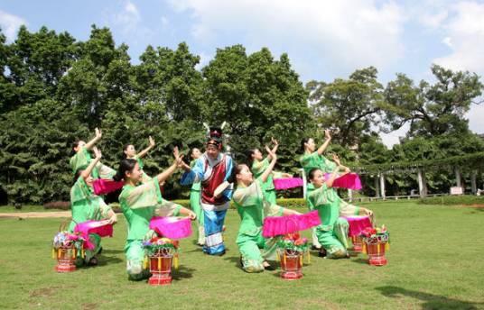 新增项目 龙岩采茶灯 级别省级 申报单位龙岩市新罗区 保护单位龙岩市新罗区 龙岩采茶灯又名采茶扑蝶,是流行于龙岩城乡的民间歌舞,融说唱、戏曲、舞蹈为一体的综合性群众文娱活动形式。采茶灯从19世纪中期开始在美山村流行,采茶曲谱和战鼓是美山林氏十七世祖由广东传入的。舞蹈表现了采茶时节的劳动场景:由茶婆领头,村姑们尾随着武生、男丑在采茶锣鼓的乐声中,来到茶园中采春茶的情况。2005年11月,龙岩采茶灯被福建省政府公布为省级非物质文化遗产保护项目。2014年12月03日,龙岩采茶灯入选国务院发布的“第四批国家级非物质文化遗产代表性项目名录”。