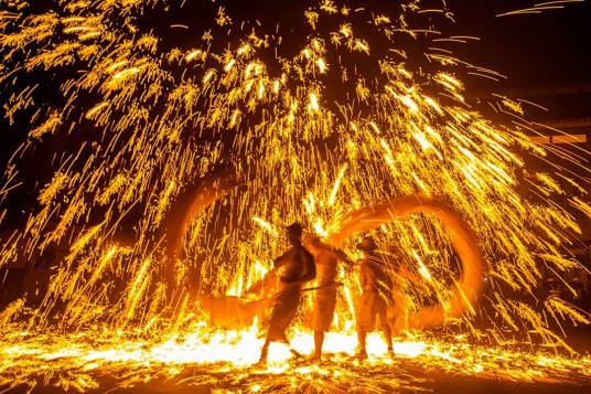 黄龙溪是一座文化底蕴深厚的川西水上古镇,火龙灯舞是这里最驰名也最具民间韵味的一项传统群众文化活动。它起源于南宋,当地先民根据主宰光明与黑暗的“烛龙”、主管风雨的“应龙”及“龙生九子”等相关的神话传说,融合蛇身、鹿角、虎眼、牛耳、象腿、马鬃、鱼鳞、兽须,创造了火龙灯舞这一优秀的民间表演艺术。 <br />